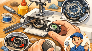ミシンのボビンが回らない原因を、下糸が出ない・空縫い・糸絡みの症状別に切り分けて解説。縦釜/水平釜の正しいセット、上糸の天びん・糸調子確認、釜周りの掃除と注油、部品交換や修理相談の目安まで網羅。ミシンのボビンが回らない悩みをチェック順で最短解決。