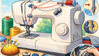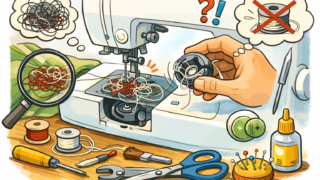 ミシンの下糸がつる原因を、下糸ループ・糸絡み・下糸が出てこない症状から特定。糸掛け、糸調子ダイヤル、ボビンの向き、内釜掃除、針交換、下糸テンション調整まで手順化し、ミシンの下糸がつる悩みを最短で解決します。試し縫いの見方と、直らないときの相談目安も。
