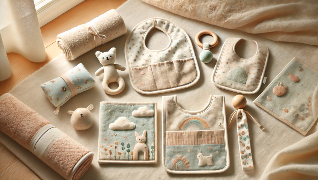 出産祝いで選ばれるのは、単品より「セット」であることが多いです。同柄のスタイ+ガーゼハンカチ+ミニ巾着、みたいに、見た目のまとまりがあると一気にギフト感が出ます。ラッピングの対応可否や、同梱できる範囲を明確に書いておくと、やり取りもスムーズになりますよ。