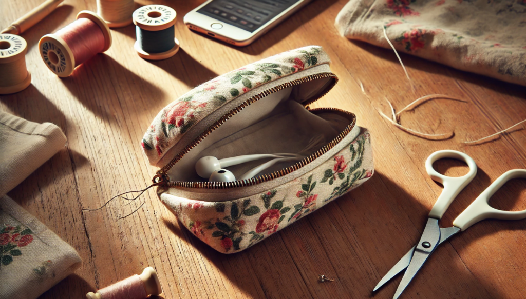 ハンドメイドミシン小物人気の王道、ポーチ。これはもう強いです。なぜかというと、ポーチって「生活のあらゆる場面に存在する」から。コスメ、薬、イヤホン、充電器、文房具、通帳、鍵、子どもの小物、推しグッズ……使い道が多すぎて、買う側のイメージが一瞬で湧くんですよ。だから売れやすい。