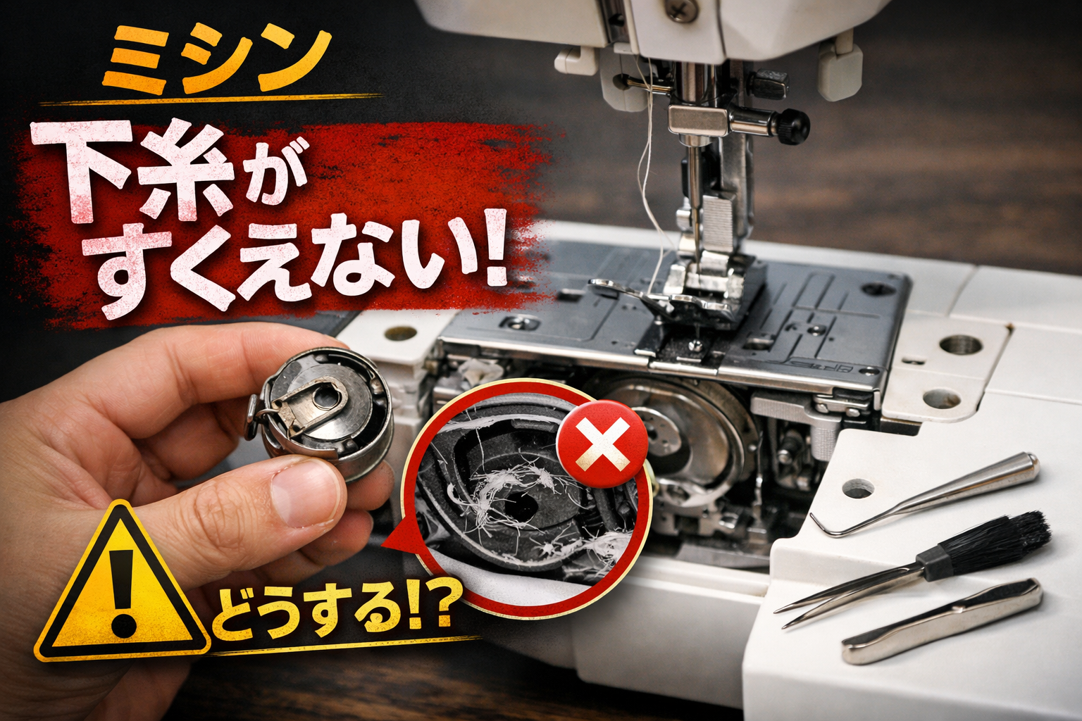 まずは「故障かも…」の前に、成功率が一気に上がる基本の型を押さえます。下糸がすくえない症状って、見た目は派手だけど原因は意外とシンプル。ここを順番にやるだけで、下糸が上がってくるケースが本当に多いですよ。