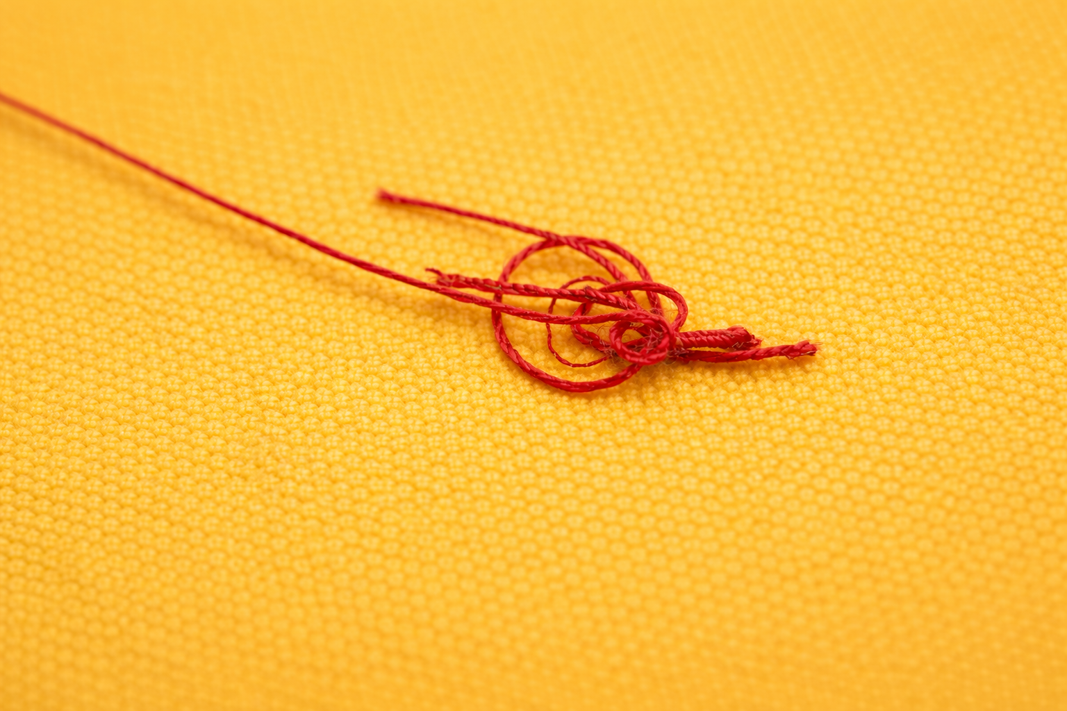 - 針穴に通した糸が、針の溝側に収まっているか見る